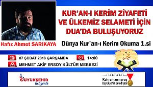 Hafız Ahmet Sarıkaya Kur’an Tilaveti gerçekleştirecek.