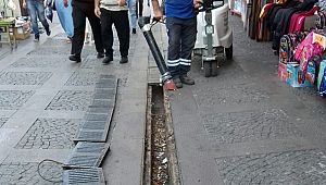 Belediyesi, mazgalların tıkanıklığını temizlerken, kırılan veya eskiyen