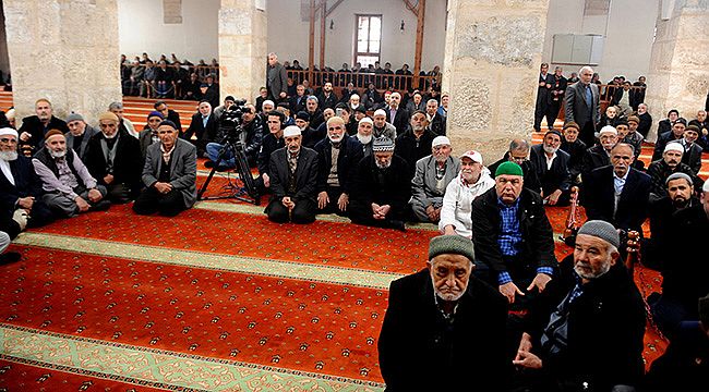 Ulucamii’nde gerçekleştirilen Mevlid programında vatandaşlara girişte gülsuyu kolonyası ikram edildi.