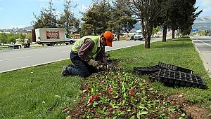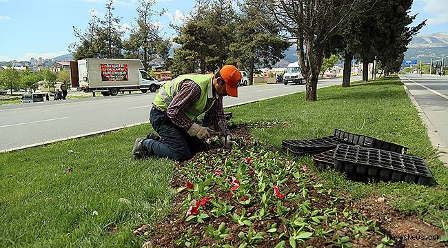 yürütülen mevsimlik çiçek dikimi tüm hızıyla devam ediyor.