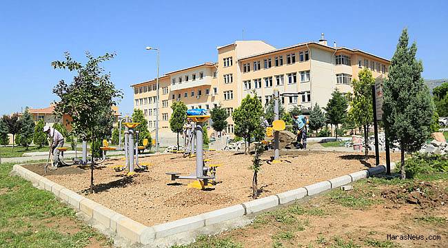 Park ve Bahçeler Şube Müdürlüğü tarafından Dulkadiroğlu İlçesi Yavuz Selim Mahallesi sınırları içinde bulunan TOKİ Yıldız Mesleki ve Teknik Anadolu Lisesi çevre düzenleme çalışması kapsamında; kondisyon aletleri kurulumu, bordür çekme ve parke döşeme çalışmaları yapılarak hizmete sunuldu.