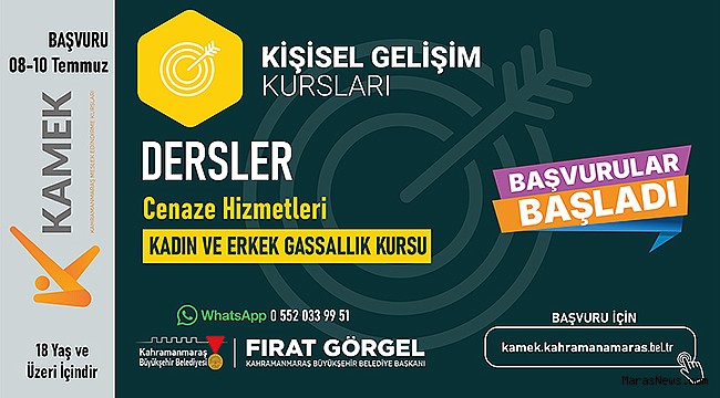 18 yaş ve üzeri vatandaşlara açık olan Gassallık Kursu’na başvurular başladı. Eğitime katılmak isteyenler, https://kahramanmaras.bel.tr/duyuru/2025/07/08/kamek-gassallik-kursu-basvuru-formu internet adresinden kayıt yaptırabiliyor. Başvurular için son tarih ise 10 Temmuz Perşembe. Başvuru şartları ve eğitime ilişkin detaylı bilgiye ise 0552 033 99 51 numaralı Whatsapp danışma hattından ulaşılabiliyor.