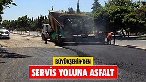 Arsan Kavşağı’ndaki servis yolunda sıcak asfalt serim çalışmalarını sürdürüyor.