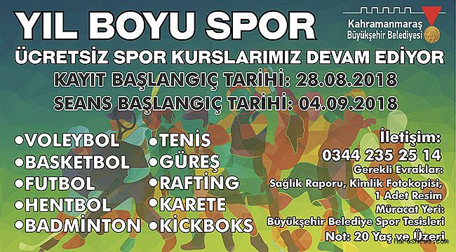 Kimlik Fotokopisi ve 1 adet resimle Kahramanmaraş Büyükşehir Belediyesi Spor