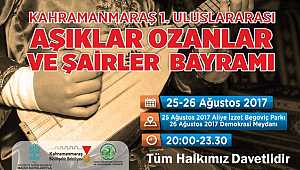 Kahramanmaraş 1. Uluslararası Aşıklar Ozanlar ve Şairler Bayramı ilk olarak 25 Ağustos 2017 Cuma günü akşam saat 20.00-23.30 arasında Göksun’da Alparslan Türkeş Mesire Alanı Güreş Çim Saha’da, aynı gün Onikişubat İlçesi Aliya İzzetbegoviç Parkı’nda aynı saatte gerçekleştirilecek.