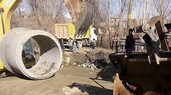 çalışmalarda Afşin ilçesi Ördek Mahallesi bağlantı yolunda büz atım çalışmaları
