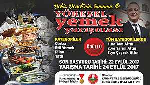 2017 tarihinde düzenlenecek olan Ödüllü Yöresel Yemek Yarışması’na son