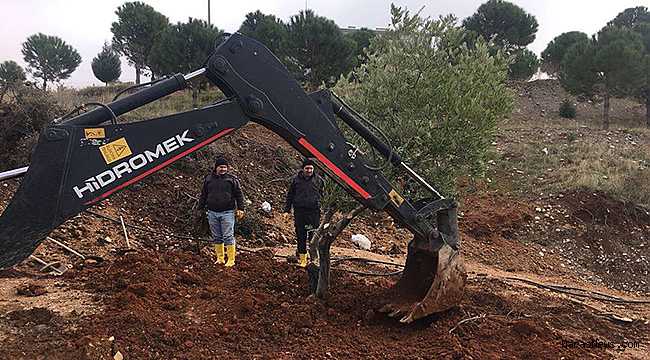çalışmalarda şu ana kadar 200’den fazla zeytin ağacı yerlerinden sökülüp