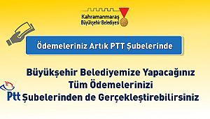 yakın PTT şubelerinde Kahramanmaraş Büyükşehir Belediyesine olan ücret, harç