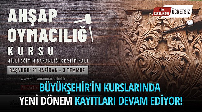 Sosyal belediyecilik hizmetleri çerçevesinde çeşitli etkinlikleri vatandaşlarla buluşturmayı sürdüren Kahramanmaraş Büyükşehir Belediyesi’nin Meslek Edindirme ve Sanat Eğitimi Kursları (KAMEK) bünyesinde oluşturduğu Ahşap Oymacılığı ve Ahşap Hediyelik Eşya Yapımı kurslarında yeni dönem kayıtları devam ediyor. Büyükşehir Belediyesi’nin internet sitesinde duyurular bölümünden çevrimiçi yapılabilen başvurularda son gün 3 Temmuz Pazartesi. 18 yaş ve üzeri vatandaşların başvuru yapabileceği kursları başarıyla tamamlayan kursiyerler Milli Eğitim Bakanlığı onaylı katılım sertifikası almaya hak kazanacak. Büyükşehir Belediyesi’nden yapılan açıklamada, Ahşap Hediyelik Eşya Yapımı ve Ahşap Oymacılığı kursları ve başvurulara ilişkin detaylı bilgiye 0552 033 99 51 numaralı WhatsApp danışma hattından ulaşılabileceği belirtildi.