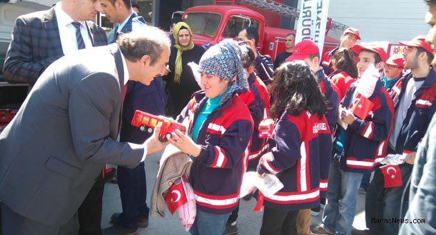 60 öğrenciden ve öğretmenden oluşan misafirlere, İtfaiye Dairesi Başkanı Cahit Küçükönder tarafından itfaiye binası gezdirildi. Konferans salonunda yangın tedbirleri yönünden kısa bir eğitim alan öğrencilere, Büyükşehir Belediyesi ikramlarda bulundu.