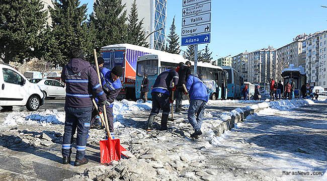 Kahramanmaraş Büyükşehir Belediyesi tarafından 3 gündür aralıksız sürdürülen kış şartlarıyla mücadele çalışmaları devam ediyor. Kentin 11 ilçesinde eşzamanlı olarak gerçekleştirilen uygulamalarda 210 iş makinesi ve 400’ün üzerinde personel aktif görev yapıyor. 20 yılın en yoğun kar yağışını alan Kahramanmaraş’ta ana cadde, bulvar ve kavşaklar tamamıyla ulaşıma açılırken; ara yollar, yaya geçitleri, otobüs durakları, hastane ve yürüyüş yollarında da hummalı çalışmalar gerçekleştiriliyor. Bir yandan buzlanma gerçekleşen yürüyüş yollarını tuz ve solüsyon uygulamalarıyla açan ekipler, diğer yandan kar kütlelerini ve yola savrulan muhtelif nesneleri temizliyor.