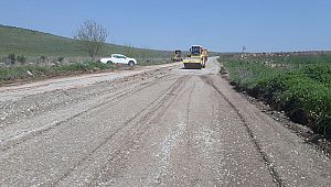 yolunda filler serim ve sıkıştırmasının ardından sathi kaplama çalışması