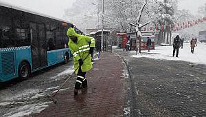 olarak kaldırımlarda kar küreme çalışmalarına devam etmektedir.
