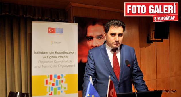 Açılış konuşmasını yapmak üzere kürsüye gelen Engelliler Şube Müdürü ve İSKEP Koordinatörü Mehmet Fatih Akşam, İstihdam Koordinasyonu için Eğitim Projesi kapsamında yapılan çalışmalara ilişkin bilgiler aktardı.