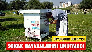 sokak hayvanları için yapılan kulübelere yem bırakmaya devam ediyor. Büyükşehir