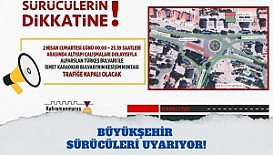 Kahramanmaraş Büyükşehir Belediyesi, KASKİ Genel Müdürlüğü ekipleri Alparslan Türkeş Bulvarı’nda altyapı çalışmalarına başladı. Bu kapsamda alınan UKOME kararı doğrultusunda Alparslan Türkeş Bulvarı ile İsmet Karaokur Bulvarı’nın kesişim noktasının 2 Nisan Cumartesi günü 00.00 – 23.59 saatleri arasında trafiğe kapalı olacağı belirtildi. Ulaşım Hizmetleri Dairesi Başkanlığı tarafından yapılan açıklamada, “KASKİ Genel Müdürlüğü ekipleri tarafından Alparslan Türkeş Bulvarı ile İsmet Karaokur Bulvarı’nın kesişim noktasında altyapı çalışmaları gerçekleştiriliyor. Trafikte oluşabilecek aksamalara mahal vermemek adına vatandaşlarımızın alternatif güzergâhları tercih etmeleri önem arz etmektedir” ifadelerine yer verildi.