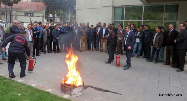 Burada itfaiye eğitmenleri tarafından kontrollüyangın çıkarılarak personellere, yangın söndürme tüpünün kullanılışı gösterildi. Eğitime katılan personellerden bazıları, söndürme cihazını kullanarak yangın söndürme becerilerini artırdılar.