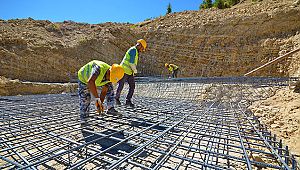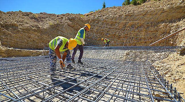Temel radye demiri montaj çalışmaları devam eden içme