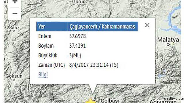 gece saatlerinde mahalle sakinlerini korkuttu. Deprem; Çağlayancerit ilçe