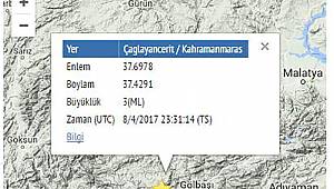 gerçekleşen 3.0 büyüklüğündeki deprem, yerin 8.1 kilometre derinliğinde meydana