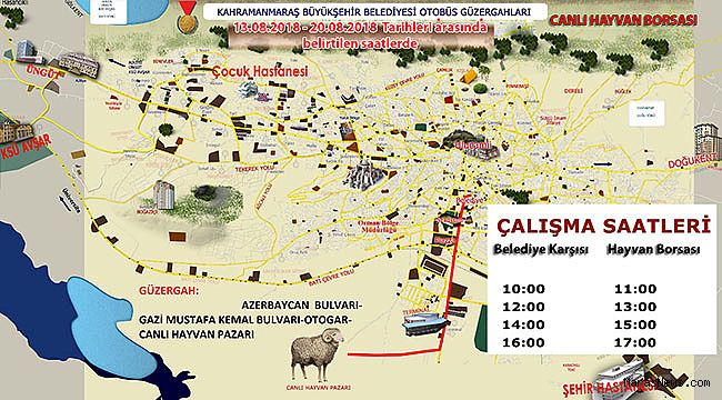 süreli olarak çalışacak otobüs hattı 13 Ağustos 2018 Pazartesi günü başlayıp,