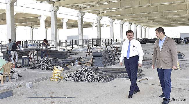 İnceleme sonrası bir açıklama yapan Başkan Erkoç: “Yapımı hızla devam eden 23 bin metrekare alan üzerine inşa ettiğimiz 6 bin metrekare kapalı alana sahip olan Canlı Hayvan Borsası inşaatımızda incelemelerde bulunduk.