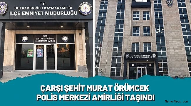 Kahramanmaraş İl Emniyet Müdürlüğü uhdesinde Bahçelievler Mahallesi 74006 sokakta hizmet vermekte olan Dulkadiroğlu İlçe Emniyet Müdürlüğü Çarşı Şehit Murat Örümcek Polis Merkezi Amirliği hizmet binası, 24.03.2022 tarihi itibariyle Aslanbey Mahallesi Kamu Külliyesinde bulunan Dulkadiroğlu İlçe Emniyet Müdürlüğü binasında hizmet vermeye başlamıştır.