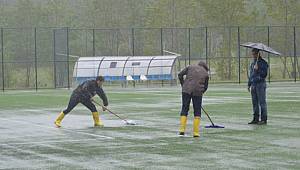 Sağanak yağmurun ara ara kestiği dakikalarda yağmurun dinmesinin ardından Gençlik Hizmetleri ve spor İl Müdürlüğü Personeli çek-paslarla sahadaki suyun çekmesi dikkatlerden kaçmazken Müsabaka hakemi Mikail Meşe, Uğur Kazancı ve Abdullah Karaturna müsabakada top sekişini kontrol ederken Müsabaka Gözlemcisi Lokman Akarsu ve iki Kulüp Başkanları da sahayı inceledi. İncelemeler sonucunda Kulüplerin istekleri ve yağışın azalması da göz önüne alınarak müsabaka oynatılmasına karar verildi.