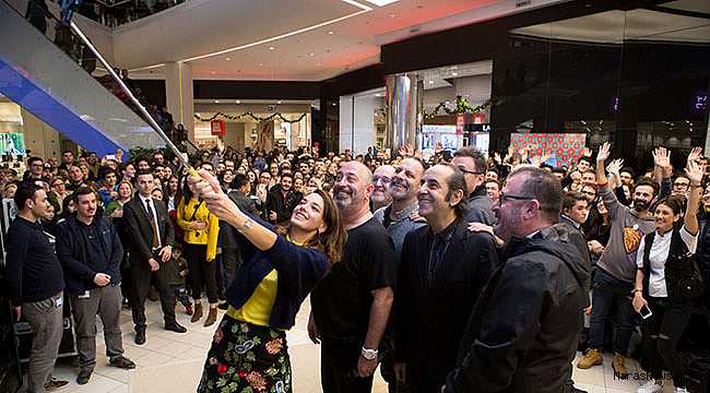 çevirmeyen film ekibi izleyicilerle fotoğraf çektirirken, Akasya Sosyal Medya