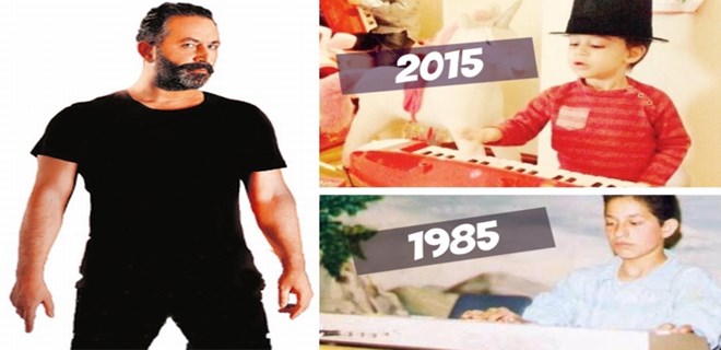 Güneş'in haberine göre Cem Yılmaz, 1985 yılında klavye çalarken çekilen fotoğrafıyla, 2,5 yaşındaki oğlu Kemal'in aynı görüntüsünü kolaj yaptı.