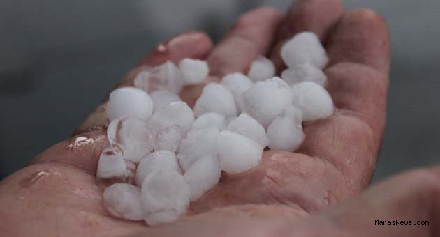 Kahramanmaraş il merkezinde akşam saatlerinde fırtınayla birlikte başlayan sağanak yağmurun ardından ceviz büyüklüğünde dolu yağdı.
