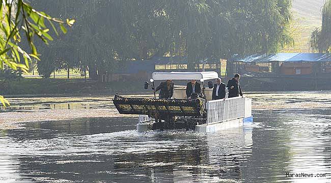 saz ve yosun biçme ve su üzerinde biriken kirliliğin toplanması için yaz