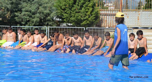 Büyükşehir Belediyesi’nin “Havuzları Çocukların Ayağına Götürüyoruz" projesi kapsamında Temmuz ayı içerisinde hizmete giren portatif havuzlar, bu yaz Kahramanmaraşlı çocukların en çok ilgisini çeken mekânlar oldu. 11 ayrı ilçede kurulan portatif havuzlarda 6-13 yaş grubuna yönelik yüzme eğitimleri veriliyor.