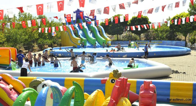 Büyükşehir Belediyesi’nin “Havuzları Çocukların Ayağına Götürüyoruz" projesi kapsamında Temmuz ayı içerisinde hizmete giren portatif havuzlar, bu yaz Kahramanmaraşlı çocukların en çok ilgisini çeken mekanlar oldu. 11 ayrı ilçede kurulan portatif havuzlarda 6-13 yaş grubuna yönelik yüzme eğitimleri veriliyor.
