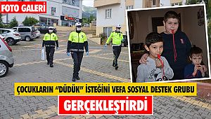 11 yaşındaki torun Mustafa Emir Dişbudak ise kapıyı açtığında polisleri görünce ilk başta korktuğunu ancak düdükleri alınca mutlu olduğunu, kardeşlerinin de bir süredir bu düdükten istediğini söyledi. (AA)
