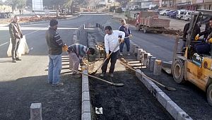refüj düzenleme, kaldırım ve bordür döşeme çalışmalarına başlandı.