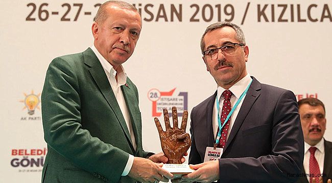 Cumhurbaşkanı Erdoğan’ın elinden ödülünü alan Kahramanmaraş Büyükşehir Belediye Başkanı Hayrettin Güngör: “Cumhurbaşkanımız ve Genel Başkanımız Sayın Recep Tayyip Erdoğan’ın takdimleriyle Yerel Seçimlerde Büyükşehir Belediyeleri arasında üçüncülük ödülümüzü aldık. Sayın Cumhurbaşkanımıza, Cumhur İttifakı teşkilatlarımıza ve başarının asıl sahibi hemşehrilerimize çok teşekkür ediyorum” ifadelerini kullandı.