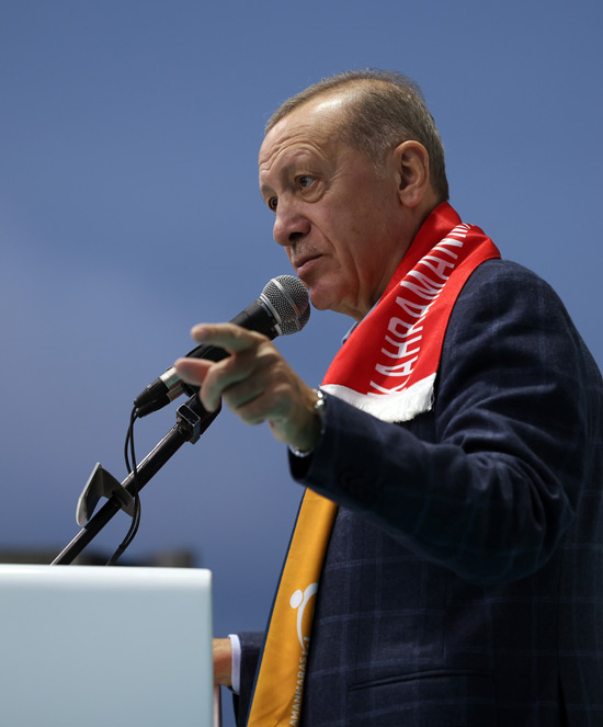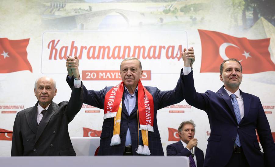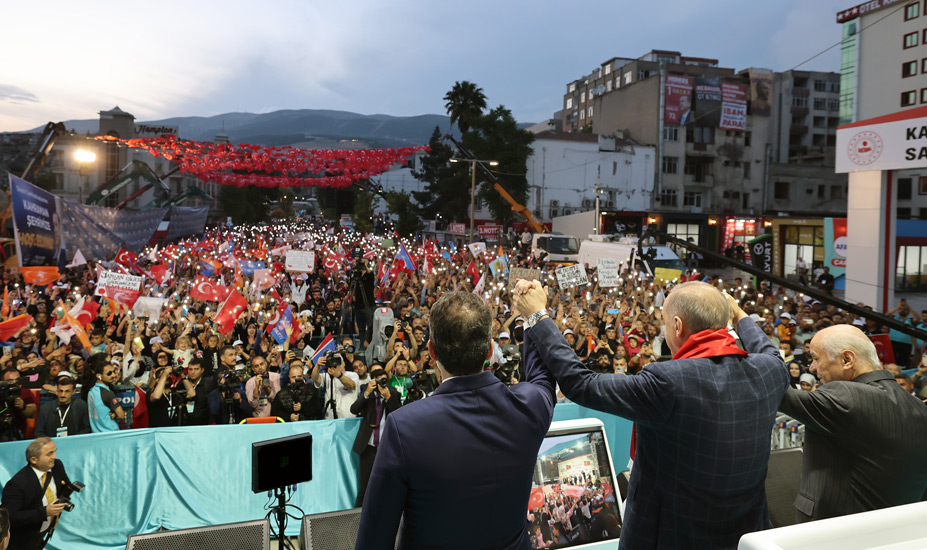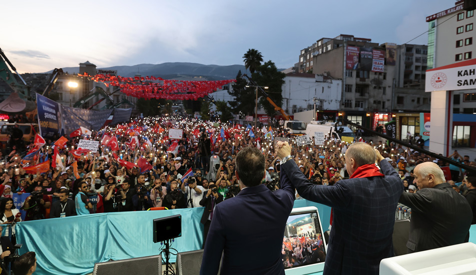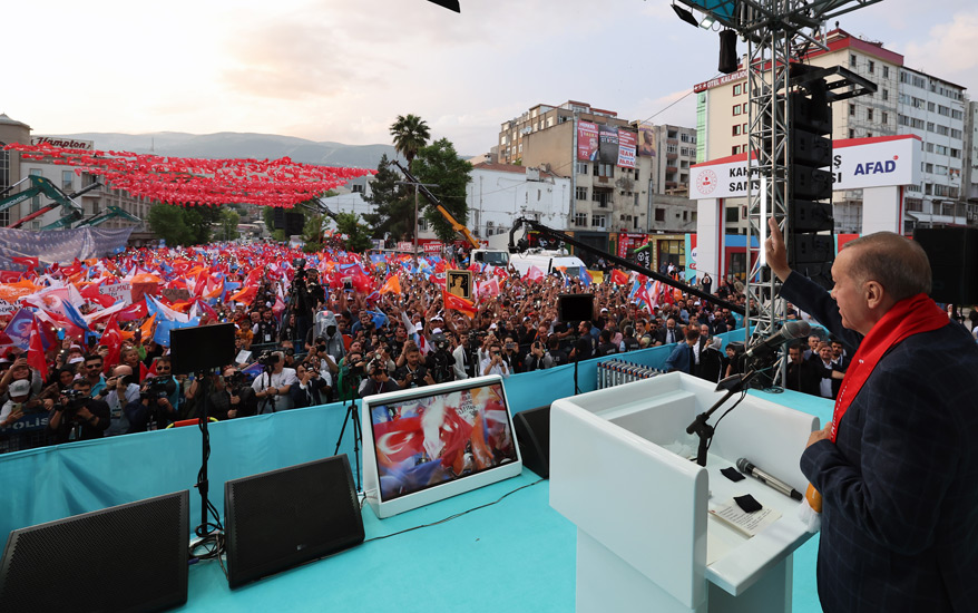 Mecliste Cumhur İttifakı olarak 322 sandalye ile çoğunluğu elde ettiklerini anımsatan Cumhurbaşkanı Erdoğan, "Cumhurbaşkanlığı seçimi ise en yakın rakibimize, dün açıklanan resmî sonuçlara göre 2 milyon 539 bine yakın fark atmamıza rağmen ikinci tura kaldı. Kahramanmaraş'ın 28 Mayıs'ta da iradesine sahip çıkarak, en yüksek katılımla sandığa gideceğine ve tercihini çok daha yüksek oranla bizden yana yapacağına inanıyorum. Türkiye Yüzyılı destanını sizinle birlikte yazacak, deprem sonrası Kahramanmaraş'ın yükselişini sizinle birlikte gerçekleştireceğiz" diye konuştu.