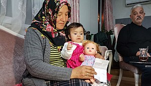 Oyuncak bebek Kahramanmaraş’ın Dulkadiroğlu ilçesinde yer alan Mehmet Akif Mahallesindeki konteyner kente yaşayan Hançerkıran ailesine teslim edildi.