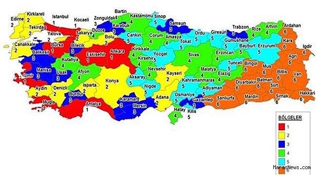 Türkiye'nin genelini kapsayan altı ayrı bölge için