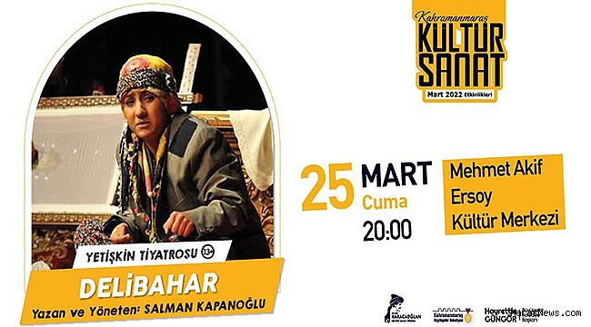 Kahramanmaraş Büyükşehir Belediyesi, Mart Kültür Sanat Etkinlikleri hız kesmeden devam ediyor. Bu kapsamda, 25 Mart Cuma günü (yarın) Salman Kapanoğlu’nun yazıp yönettiği ‘Delibahar’ adlı yetişkin tiyatrosu sahnelenecek. Mehmet Akif Ersoy Kültür Merkezi’nde saat 20.00’da başlayacak oyuna 13 yaş ve üzeri izleyiciler katılabilecek. Kültür Spor ve Turizm Dairesi Başkanlığı’ndan etkinliklere ilişkin yapılan açıklamada, “Büyükşehir Belediyesi Mart Kültür Sanat Etkinlikleri kapsamında tiyatro gösterilerinden konserlere, söyleşiden konferansa pek çok etkinlik sanatseverlerle buluşmaya devam ediyor. Bu kapsamda, 25 Mart Cuma günü ‘Delibahar’ adlı yetişkin tiyatrosu sahnelenecek. Mehmet Akif Ersoy Kültür Merkezi’nde sahnelenecek oyunumuza 13 yaş ve üzeri tüm vatandaşlarımız davetlidir” ifadelerine yer verildi.