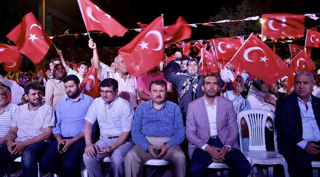 Öğrencilerin şiir okuduğu, Talha Bora Öge’nin sahne aldığı Demokrasi Nöbetinde Kahramanmaraş Halkı 7’den 77’ye Demokrasi Nöbetine destek verdi.