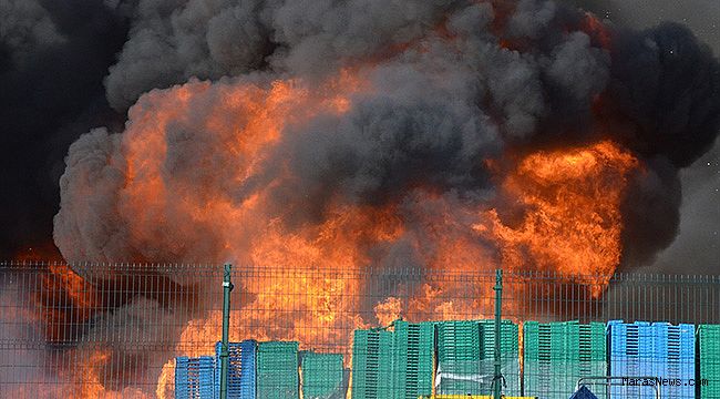 deponun bahçesindeki plastik kasalar henüz belirlenemeyen nedenle tutuştu. Kısa