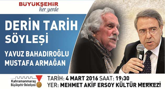 Mehmet Akif Ersoy Kültür Merkezi’nde 4 Mart 2016 Cuma günü gerçekleştirilecek olan’Derin Tarih’ söyleşisi akşam saat 19.30’da başlayacak.