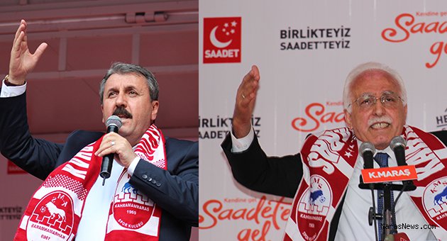 Saadet Partisi Genel Başkanı Mustafa Kamalak ve eski BBP Genel Başkanı Mustafa Destici Kahramanmaraş'ta düzenlenen mitingde vatandaşlara seslendi. Kamalak ve destici Müftülük Meydanı'ndaki mitingde, Kahramanmaraşlspor severler tarafından Kahramanmaraşspor’un atkısı hediye edildi. Mitinge omuzundaki atkı ile devam eden Saadet Partisi Genel Başkanı Mustafa Kamalak ve eski BBP Genel Başkanı Mustafa Destici Kahramanmaraşspor’a da başarılar dileyerek Stadyum konusuna da değinmeden geçemediler.
