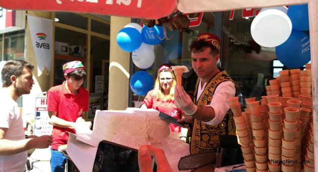 İlçe merkezi Güner Önce Caddesinde yeni hizmete giren Altay Pastanesinin sahibi Adem Altay, yeni iş yerinin açılışında kendisinin imal ettiği 300 kilo ağırlığında ve bir buçuk metre uzunluğundaki dev dondurmayı motorlu testere ile keserek açılışa gelen davetlilere dağıtarak şov yaptı.