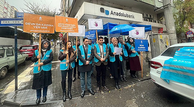 25 Kasım Kadına Yönelik Şiddetle Mücadele Günü vesilesiyle basın açıklamasını Deva Partisi İl Başkan Yardımcılarından Avukat Fatma Erdeve yaptı. Basın Açıklamasında DEVA Partisi İl Başkanı Uzm.Dr.İrfan Karatutlu, Dulkadiroğlu İlçe Başkanı Salih Dökme, Onikişubat İlçe Başkanı Hakan Dedeoğlu, il ve ilçe teşkilatları da hazır bulundu. “Bugün kadına şiddete karşı hep beraber dimdik ayakta durma günü. Kadına şiddetin mazereti, aması, fakatı olmaz.” diyerek başlayan Deva Partisi Kahramanmaraş İl Başkan Yardımcısı Av.Fatma Erdeve basın açıklamasında şunları ifade etti: