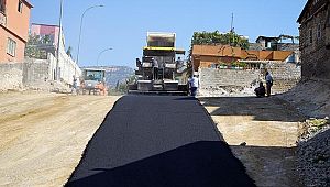 Başkanlığı ekiplerince yürütülen sıcak asfalt kaplama çalışmalarının