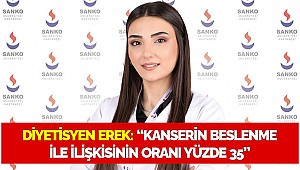 “Son yıllarda yapılan çalışmalar kanser ile beslenme arasındaki güçlü ilişkiyi ortaya koymakta, kanserin beslenme ile ilişkisinin yüzde 35 oranında olduğunu göstermektedir” diyen Erek şöyle devam etti: